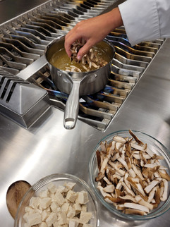 My partner AP and I created the Szechuan Hot & Sour Soup. We had to tweak the recipe a little and make a few adjustments. I was told the result was outstanding. Of course, I couldn’t taste it. The chicken stock we used had onion in it, which kept me from being able to critique my own dish. Thankfully AP was able to tell me what she thought regarding the flavors, and we adjusted from there.