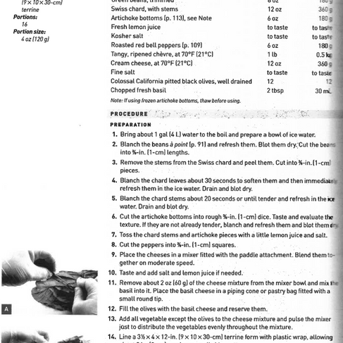 What Happened(?): Well…I didn’t get to make cheese like I was hoping, due to time constraints. There’s only so much we can accomplish in a four-hour lab. However, I did have the opportunity to create the Roquefort Mousse this week. My classmates worked on the Chevre Boulettes and the Chevre & Vegetable Terrine. Plating was a big part of our skills lab this week, so we reverted back to what we learned about charcuterie presentation in week 3.