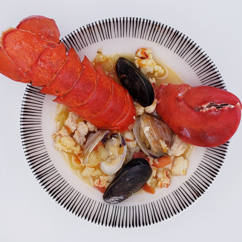 I made bouillabaisse for the first time today and it was delicious, if I do say so myself. It was also super fun to create. I most definitely need more practice when it comes to skewering and / or dismantling a lobster. Honestly, I was a little upset thinking I may have caused the lobster so much pain before his death. I cannot stand the idea of bringing harm to a living creature. We must kill to eat, but we don’t have to be vicious or barbaric about it. Thankfully, I found this: “…lobsters do have nerves, and a very real (if very primitive) nervous system that can react to outside stimuli. Current research is unclear on whether or not their brains have the capacity to process such stimuli as pain and undergo emotional trauma when it's administered (a feeling we'd refer to as "suffering"), but many people still like to minimize the chance that the creature is suffering before it's consumed.” (Lopez-Alt, 2020)