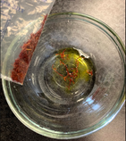 Unfortunately, my lobster had the worst last day of its life today. My lab partner and I decided to skewer the crustacean to keep the tail from curling while it boiled. When I pushed the skewer through the cloaca that poor little thing didn’t like it AT ALL. It spiked my finger so fast and hard it not only bled terribly (like fingers tend to do) but that little booger created one heck of a bruise. I’m sure I’ll be feeling that one for a few days. ☹ This little guy below was a much easier to wrangle.
