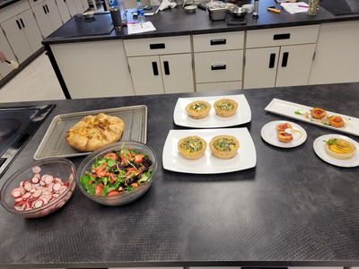 After the demo, we started measuring out all our ingredients and gathering all the mise en place we would need for the entire lab. My lab partner and I decided to make Guava Jellies and Spinach & Mushroom Quiche using the flaky pie dough method.