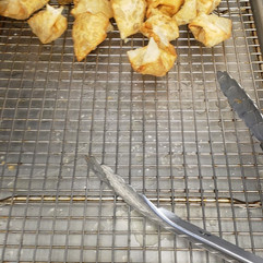 Evaluation: WONTONS ARE HARD!!! I have a new respect and appreciation for the skill it takes to prepare wontons and spring rolls. The technique we used in class was the bonnet. “The Bonnet: the most common method, perfect for wontons using regular white wrappers that will eventually be boiled and mixed into soup or sauce.” (Sarah, 2020) The recipe said to steam the wontons, but frying them gave them a much better color, and made the texture more palatable. We paired it with a mango-sweet chili dipping sauce, that added more depth of flavor to the dish.