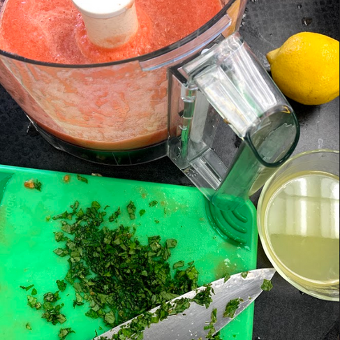 We also created a tomato basil sorbet. I was unsure about trying this. We don't really think of tomatoes as being a dessert item. However, a ripe tomato can be quite sweet. It was different for sure. 😊 I can't say it's something I'd like to eat again. It wasn't bad...just not my cup of tea, so to speak.
