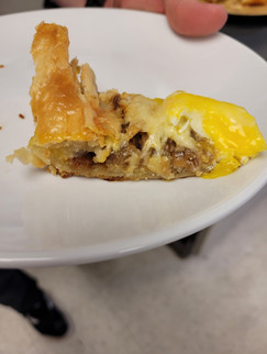 Evaluation: I think all our creations this week turned out splendidly. My one correction would be for the guava jelly tarts. My partner forgot to dock the pastry dough before baking. It caused a puffing effect which in turn kept the jelly from staying on the pastry. It ran off the sides some, but the flavor profile was perfect. “To "dock" a pastry means to prick a pie crust with a fork before baking. This technique is a simple way to poke holes in the pastry dough. This allows the steam to escape so that the pie crust doesn't puff up in the oven. Usually, this technique is used when blind baking a pie crust before filling.” (Larsen, 2019)