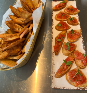 What Happened(?): I had something last minute come up at school for my kiddo this week, and was unable to make it to lab. I asked a classmate for notes from the lab, but have yet to get a response. Based on the photos posted in our group chat, it appears they had to deviate from the recipes a little. Just like other businesses all across the country, we have been having some supply chain issues at the Rane Culinary Science Center. All of the dishes turned out beautifully. Take a look below and check them out for yourself. I'm pretty partial to the charcuterie board. I could snack on that all day. 😊